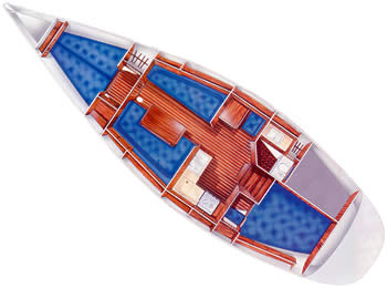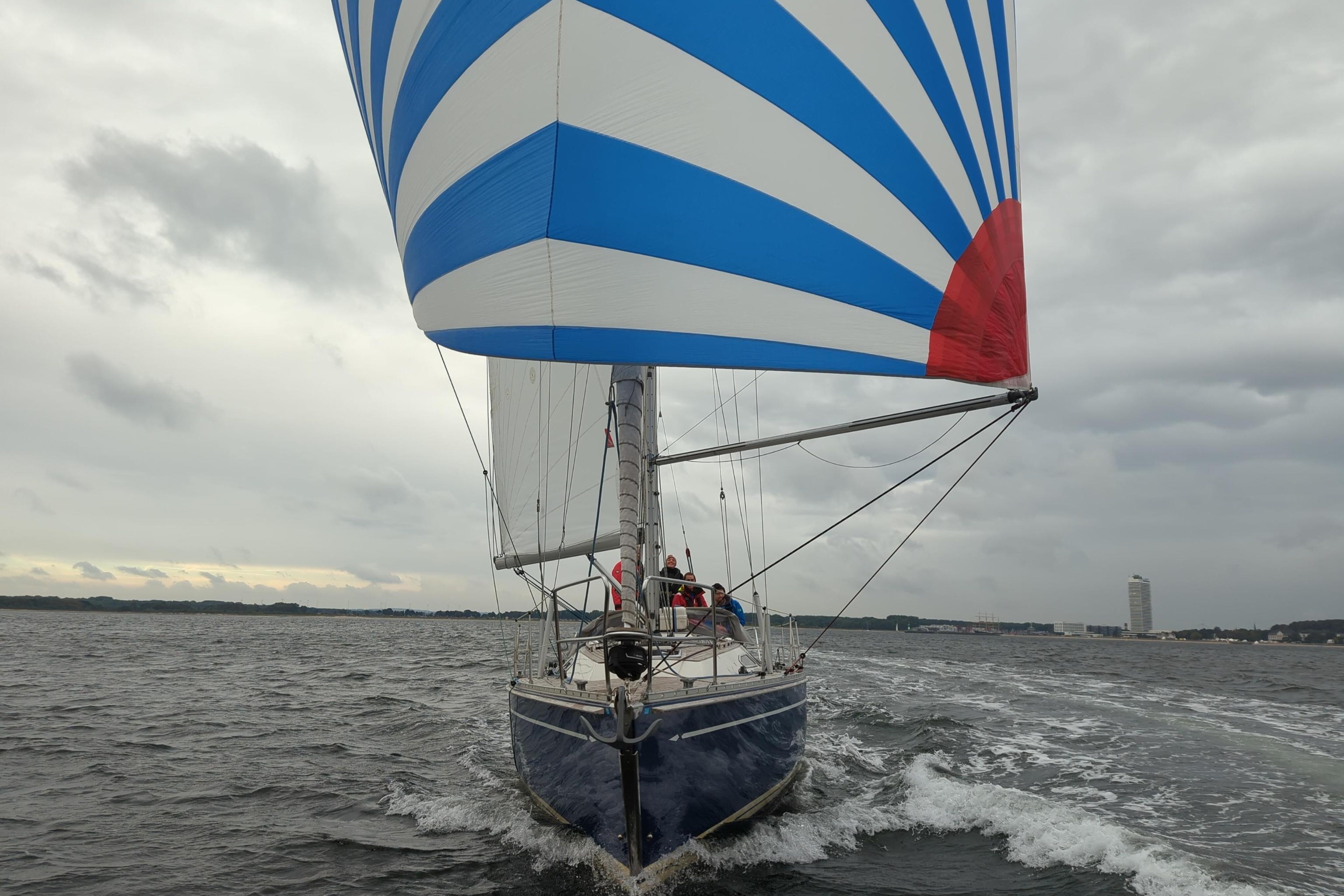 Die Meu ist eine gebrauchte Comfortina 38, Baujahr 1993. Sie ist 11.75 m lang, 3,50 m breit, hat 1,95 m Tiefgang, 85 qm Segelfläche, beherbergt 6-7 Kojen und entspricht dem Anforderungsprofil an ein sportlich zu segelndes Jugendboot.
